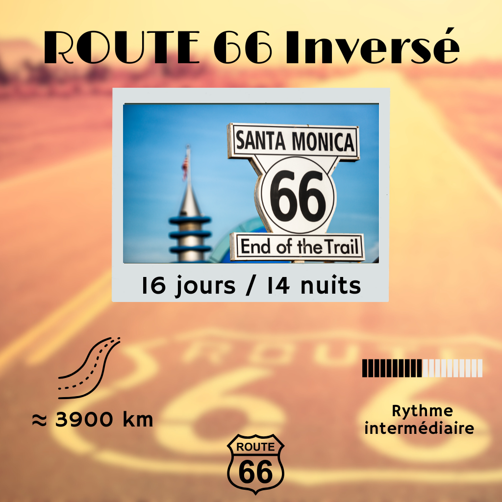 Une version en 10 jours, pour se concentrer sur la plus belle partie de la » Route Mère » (la dernière partie a avoir été déclassé et en un certains sens l’une des plus riches). Un départ d’Albuquerque pour arriver à Los Angeles, tout en gardant l’essentiel de l’esprit « sixty-six »